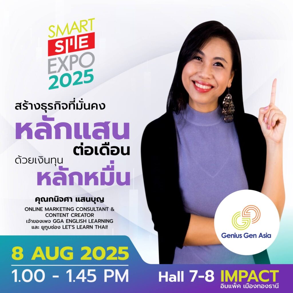 SPEAKER: คุณกนิจศา แสนบุญ Marketing Consultant & Content Creator เจ้าของเพจ GGA English Learning และ ยูทูบช่อง Let’s Learn Thai!